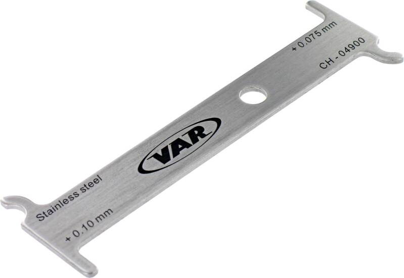 Meten = weten, geldt ook om te bepalen of er kettingslijtage is opgetreden. Een versleten ketting wordt langer en zal dieper op de tanden van de kettingwielen gaan liggen, zodat er een risico bestaat van het " opvreten " van de vertanding. Dus om dit te meten hebben we een "kalibermaatje" !
